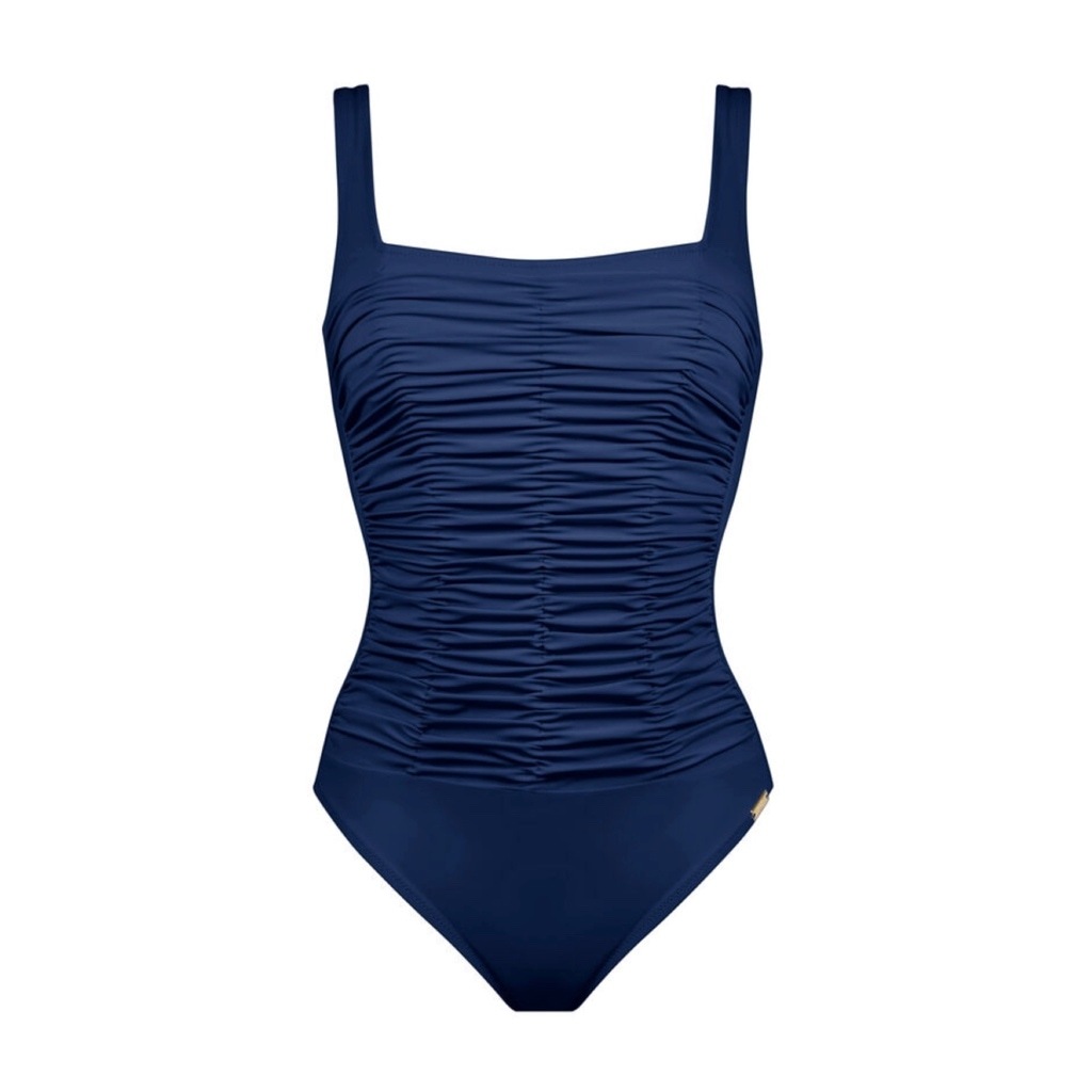 Het Elements voorgevormde badpak van Maryan Mehlhorn is uitgevoerd in de kleur indigo. Het badpak heeft een rechte hals, wijde bandjes en een lage rug. De geplooide stof aan de voorkant zorgt voor een speels effect. Een echte basic!