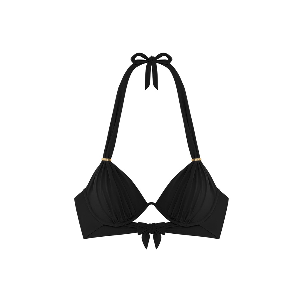 Bikinitop Fabia heeft een beugel en mooie plooien onder de buste. De top is vast te maken met een bandjes om de nek en rug. De brede schouderbandjes zijn verstelbaar.