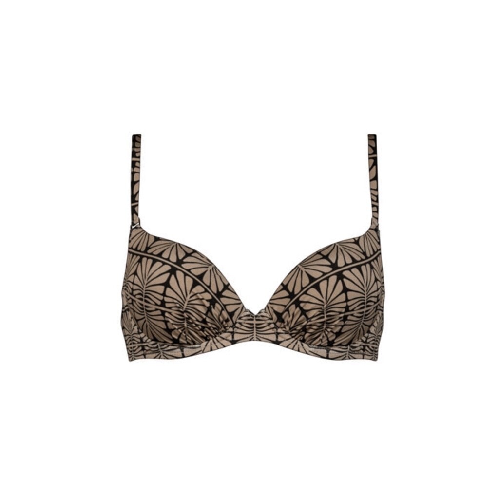 De Artisan Vibe twist bikinitop van Watercult is uitgevoerd in de kleur Caramel-Black. De bikinitop is voorzien van zachte (uitneembare) foam cups die de borsten een mooie vorm geven. Het twist detail aan de voorkant geeft het een speelse look. Combineer de bikinitop met een van de bijpassende bikinibroekjes voor de complete look!