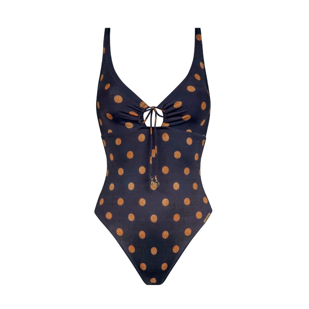 Het Refined Heritage badpak van Watercult is uitgevoerd in de kleur Navy-Amber. Het badpak is voorzien van zachte (uitneembare) foam cups die de borsten een mooie vorm geven.