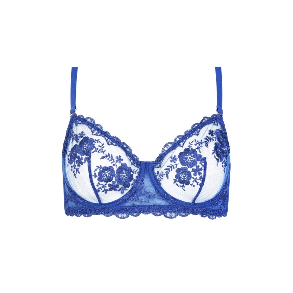 Deze beugel-bh van Huit uit de Parisienne collectie combineert verfijnde transparante tule met luxe borduursels. De bh geeft goeie ondersteuning dankzij de beugels en subtiele baleinen aan de zijkant. De zachte, transparante cups voelen licht aan en de platte afwerking zorgt voor een glad resultaat onder kleding. Dankzij de verstelbare bandjes en haak-oogsluiting is de pasvorm perfect aan te passen.
